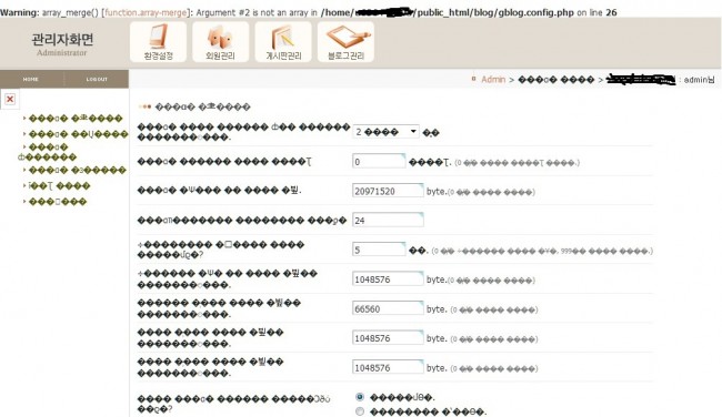 관리자 화면에서 지블로그 설정페이지 들어가도 이렇군요;;;