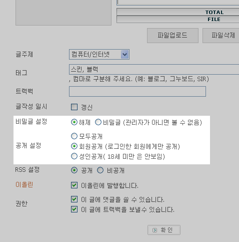 기본 베이직에 성인 게시물 기능 추가~ 정보