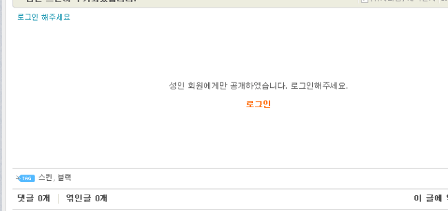 3. 성인공개는 비회원일 때 로그인을 하라고 나오지만 로그인 후 18세 미만인 경우 성인이 아니니 보여줄 수 없다는 글만 출력됩니다.