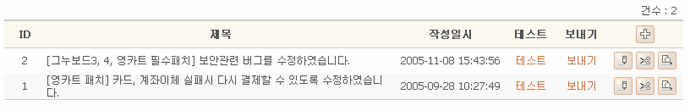 작성된 내용을 확인하기 위하여 테스트를 클릭합니다. 테스트를 클릭하면 "관리자님께 메일을 발송하였습니다." 라는 메시지를 출력합니다.