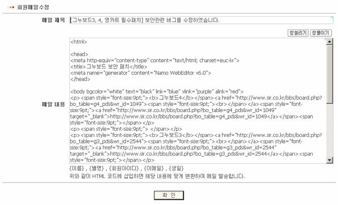 회원메일을 발송하기 위해서는 우선 메일의 내용을 작성하여야 합니다.