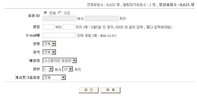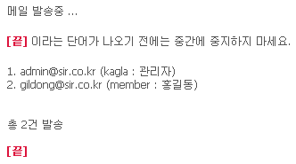 만약, 중간에 오류가 발생하여 중단된다면 그 회원아이디 부터 선택하여 보내시면 됩니다.