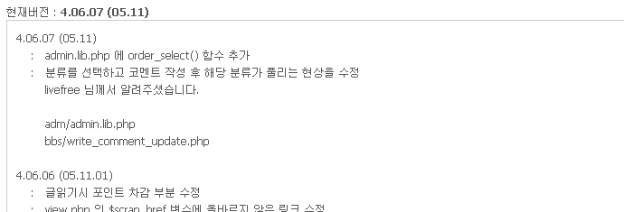 HISTORY 파일에 있는 내용을 가지고 표시하는 것이므로 패치시에 HISTORY 파일도 같이 업로드 하셔야 정상적인 버전이 표시됩니다.