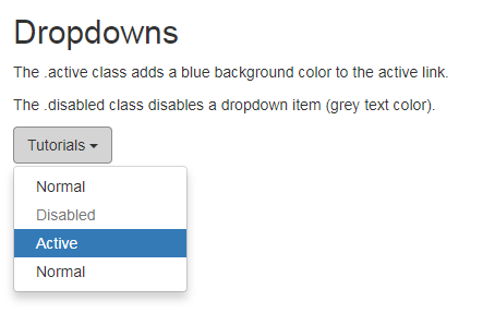 <p>The .disabled class disables a dropdown item (grey text color).</p>
