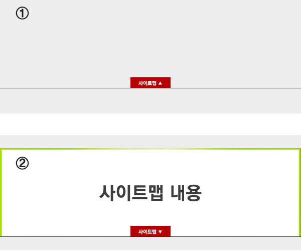 위의 그림 1, 2 와 같이 1에서 누르면 2처럼 펼쳐졌다가 2버튼을 다시 누르면 1번 처럼 접히는 형태입니다.