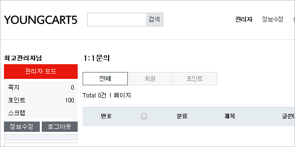 영카트에서 FAQ, 1:1 게시판 열기 정보